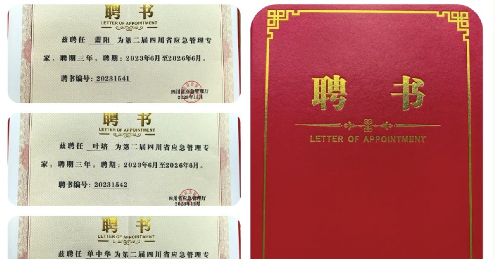 荣誉 | 同飞科技3名高级工程师获聘担任四川省应急管理专家